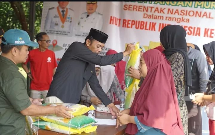 Kegiatan tersebut merupakan kolaborasi pemerintah dengan Bulog yang dilaksanakan secara serentak di kecamatan seluruh Indonesia dalam rangka memperingati Hari Ulang Tahun (HUT) ke-80 RI.